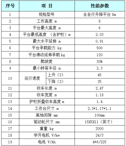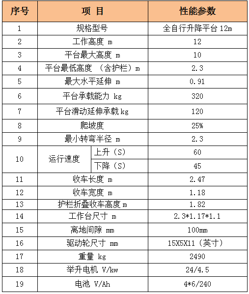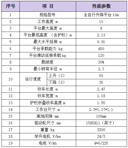 3、全自行升降平台参数