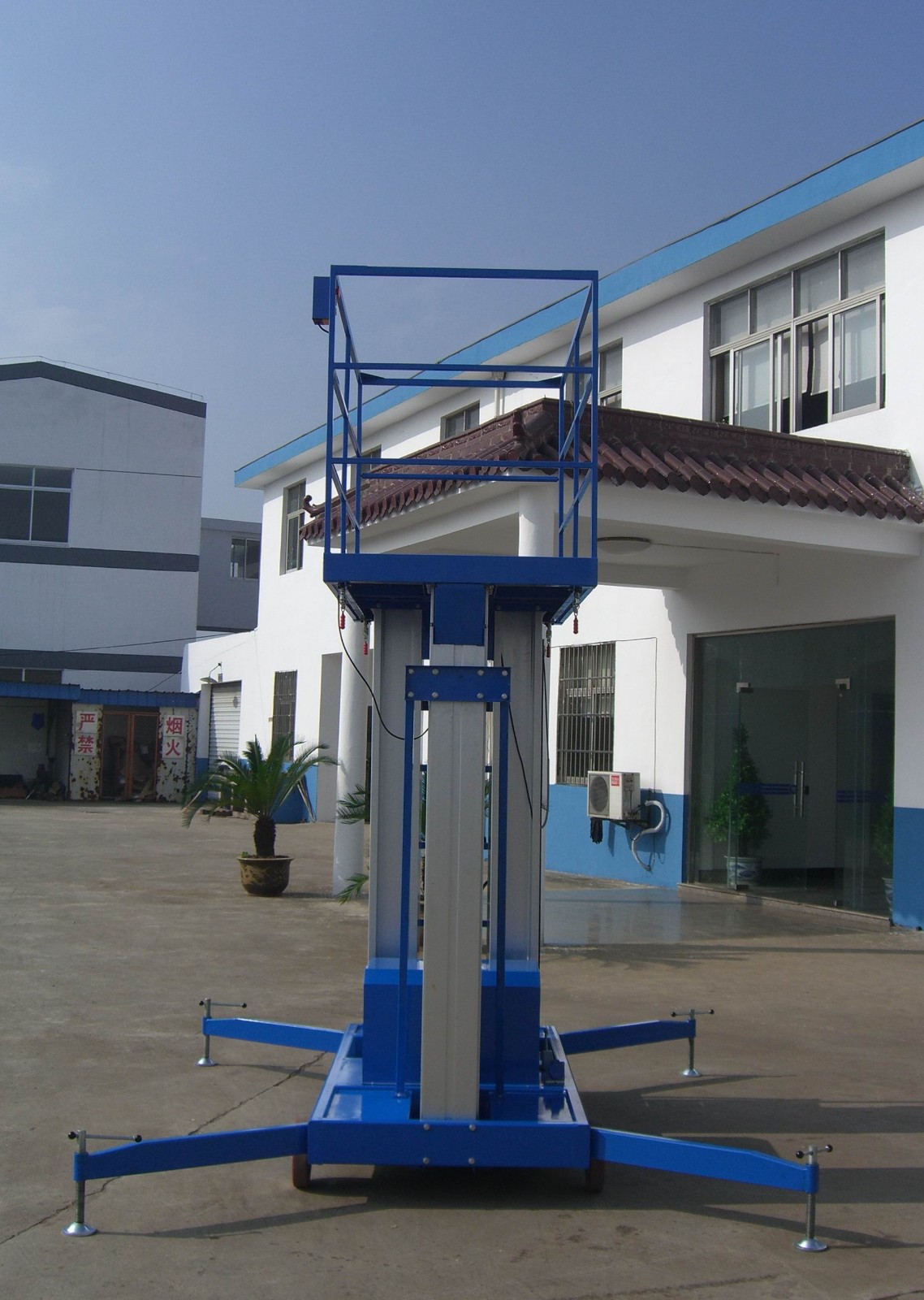 三柱铝合金升降平台整体采用高强度铝型材精制而成。由于型材强度高,采用三桅柱式结构,稳定性极好,运转灵活,载重量大,平台面积大,推行方便。三柱铝合金升降平台外观轻盈,能在极小的空间内发挥最高的举升能力,使升降台的偏转与摆动极小。三柱铝合金升降平台广泛用于厂房、宾馆、大厦、商场、车站、机场、体育场等,可用作电力线路、照明电器、高架管道等安装维护,高空清洁等单人工作的高空作业。