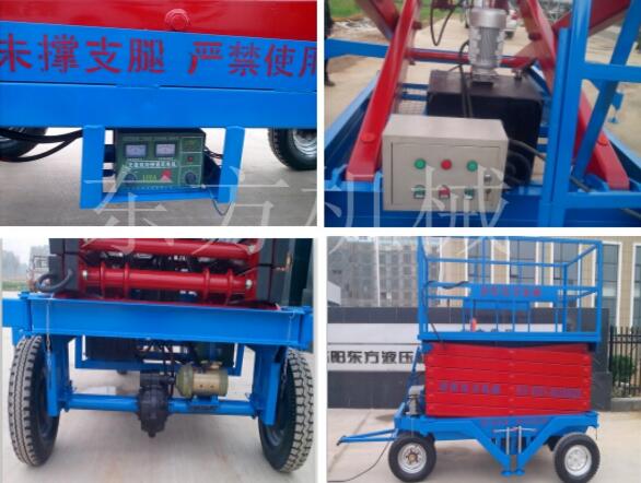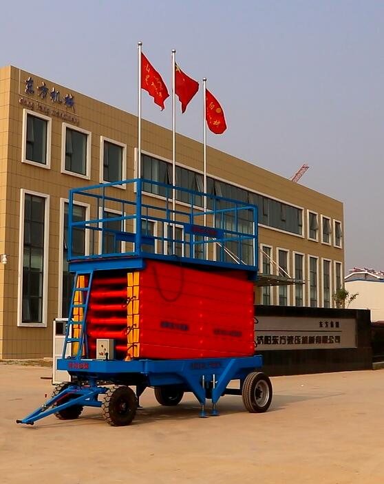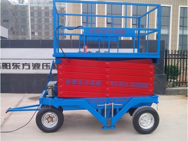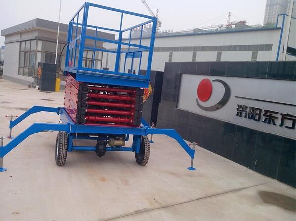 四轮移动式升降平台是用于高空作业的专用设备。自行式液压升降平台是一种多功能其中装卸设备。主要特点是:在常规四轮移动升降平台的基础上,有了进一步的改善,使用人员可以不用外力驱动,设备即可行走,使用此设备更方便。上下均可控制,一人即可完成高空作业,简单方便。